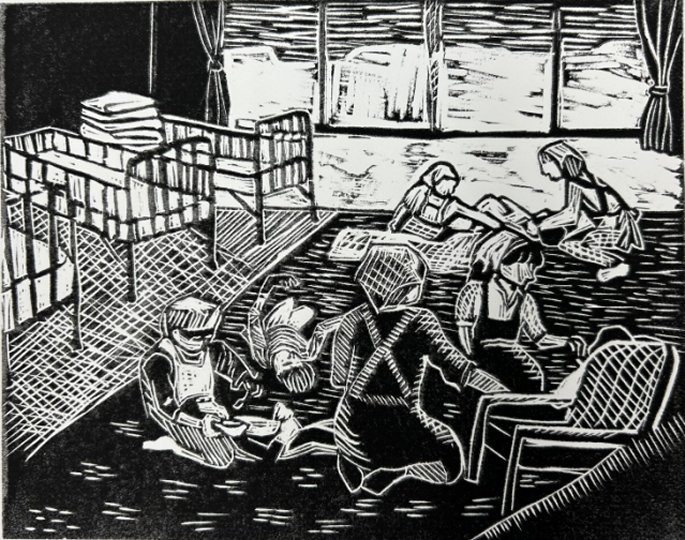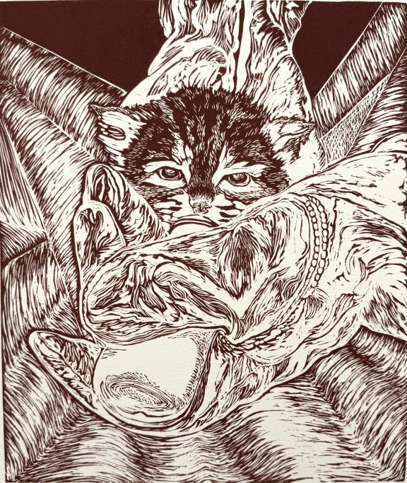 During this time of upheaval and uncertainty, many of us are looking for ways to comfort ourselves and those around us. Perhaps it has been learning a new skill; ticking items off a long to-do list; enjoying the companionship of a pet; connecting with family and friends; or basking in the beauty of nature. The artists featured in this exhibit explored the theme Handle with Care with the prints you see here. Thank you so much to everyone who participated, your work is an inspiration.