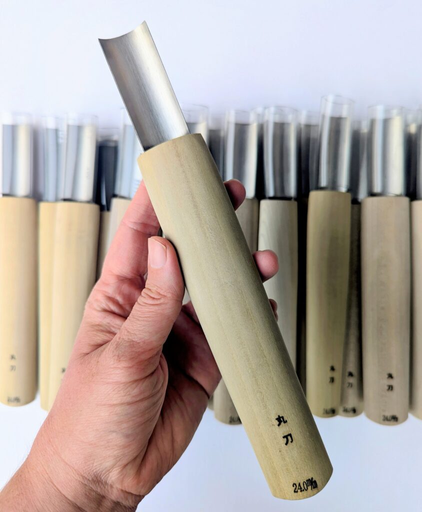 It is always a good idea to check out the McClain’s sale page as this is the place where we list any discounted stock, slow sellers or limited time supplies. Right now we have a limited supply of large 24mm Josei Maru To (u-gouge) in stock, a size that is typically a custom order from Japan taking up to six months to arrive. These clearing gouges are an absolute workhorse of a tool when it comes to removing large sections of a woodblock.
